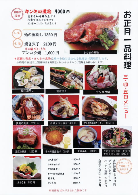 *夜の営業はおせち料理の準備のため